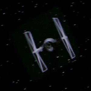 The first Millennium Falcon vs. TIE Fighter battle. You know, after waiting 27 years since this movie came out, and going through two digital revisions, you’d think that they’d fix the big rectangles around the TIE fighters where they were superimposed for this sequence. Look at this picture and tell me I’m not seeing things:
