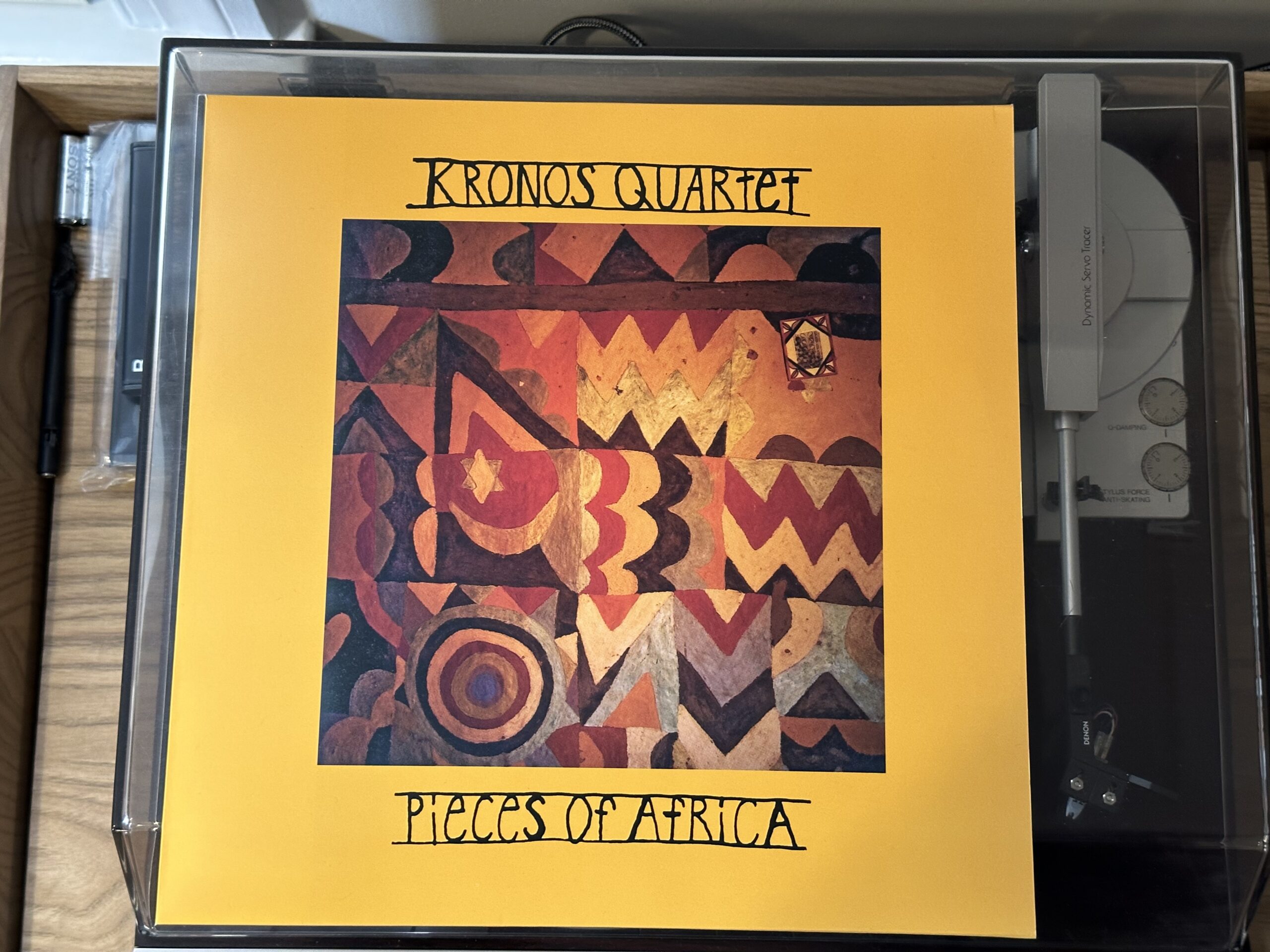 Coming from the austerity of Black Angels, you might be forgiven for thinking of the Kronos Quartet as a Very Serious Ensemble™. So the opening track on Pieces of Africa, the driving “Mai Nozipo,” might come as a shock. There’s not much austerity here. Instead, there are Ngoma drums and shakers (hosho) from Zimbabwe, played by the composer Dumisani Maraire, and a melody, in a major key, that seems as much driven by the rhythm as floating above it. But Pieces of Africa wasn’t a departure for Kronos; it was the logical outcome of their practice of commissioning new works for string quartet—and the growing accessibility of “world music” as a viable market segment.