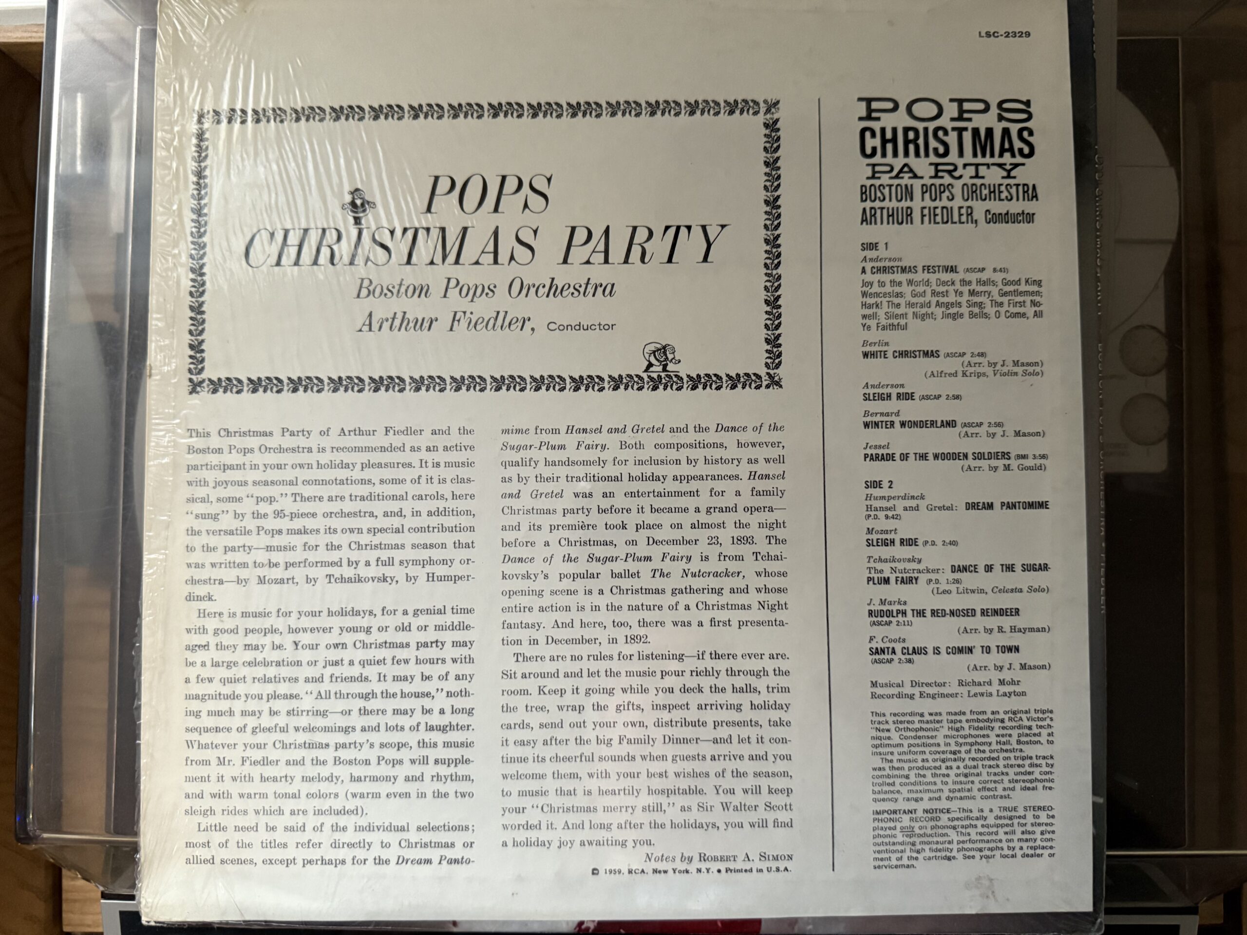 The album is a combination of arrangements, medleys, and works written especially for the orchestra, along with light classical pieces that carry the flavor of the season—in other words, a typical Pops album. And the hands of three of the Pops’ great arrangers and composers—Anderson, Jack Mason, and Richard Hayman—are all over it.
