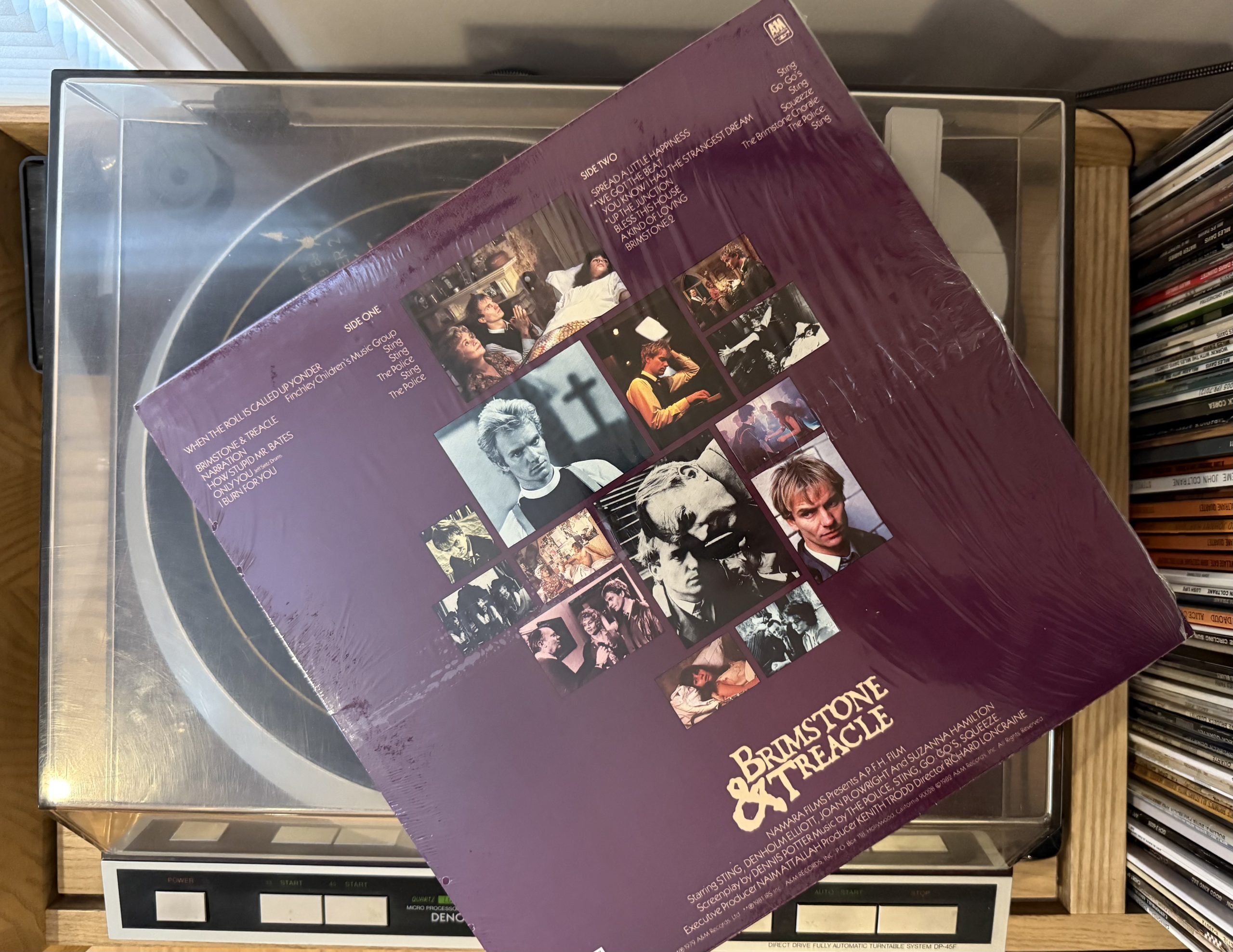 When you’re the frontman of an increasingly successful band, with multiple Grammy awards to your name,1 and you’re photogenic to boot, the well established career move is to extend your brand to other arts—specifically, film. Sting was not immune to this trend, but, as befits a cerebral songwriter given to quoting philosophers in his writing (and rhyming “shake and cough” with “Nabokov”), his initial movie roles were art-house rather than blockbuster: first appearing as Ace Face in the film version of the Who’s Quadrophenia, then his first starring turn in an art house film.