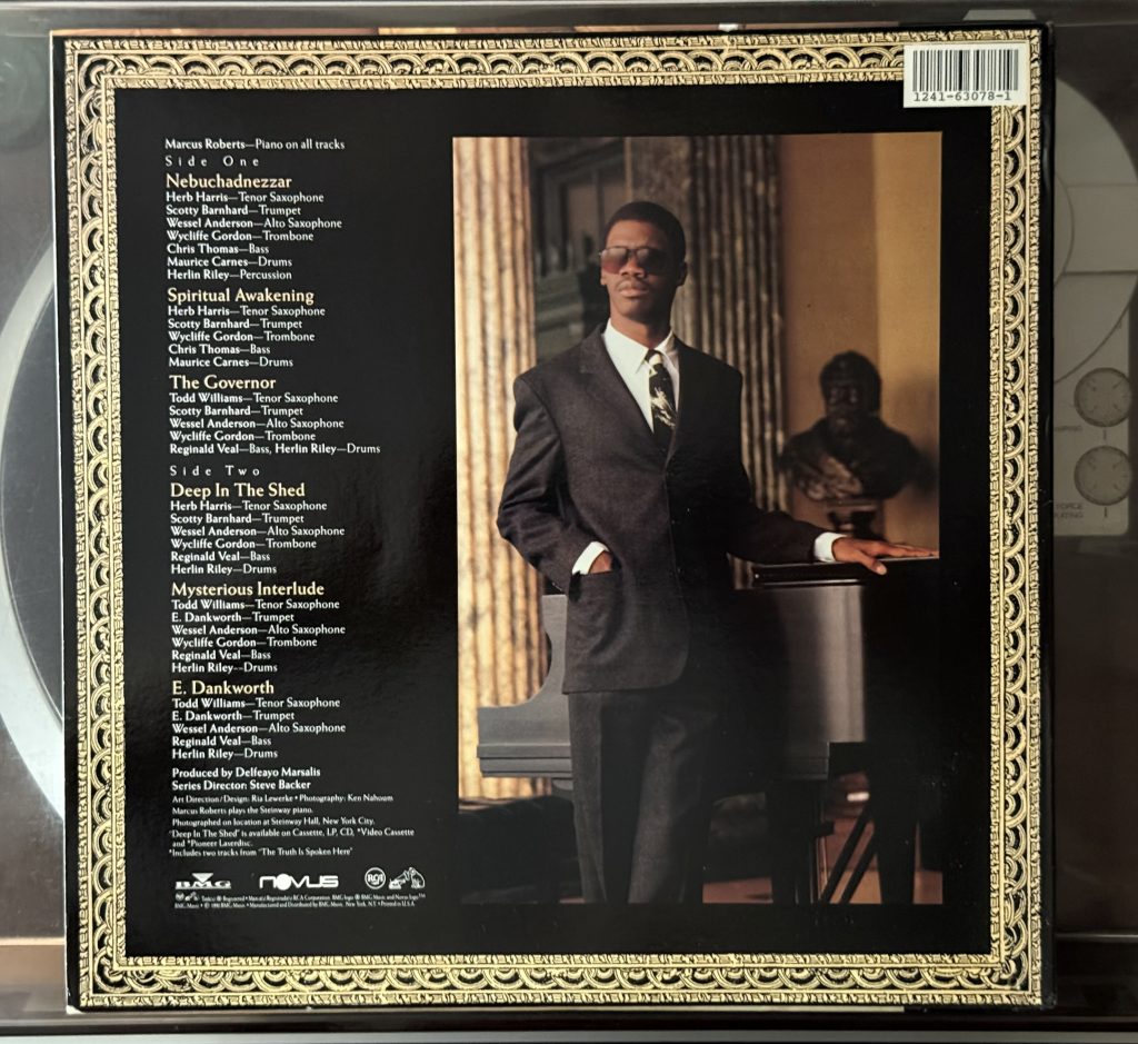 “Blackwidow” (also called “Blackwidow Blues” on the streaming services and reprising the “India” sample with heavy scratching) is introduced by a sample of a Jay Leno monologue in which he calls out a now-all-but-forgotten incident when six African-American Secret Service agents, guarding President Clinton, were refused service at a Denny’s in Maryland. (Tl;dr: they sued, it became a class action suit, they won.) The track plays like the dub cousin of the opening “Blackwidow Blues,” with a heavy Robert Hurst bass line helping to anchor the horns. We get extended horn solos — 32 bars rather than 16 — which are further extended by sampling and scratching. The spoken word sample, in which a white announcer exclaims “I’d like to have the pleasure of introducing the greatest living master of jungle music,” underpins the harder edge to the track, but Branford reclaims the narrative with a fiercely overblown tenor solo.