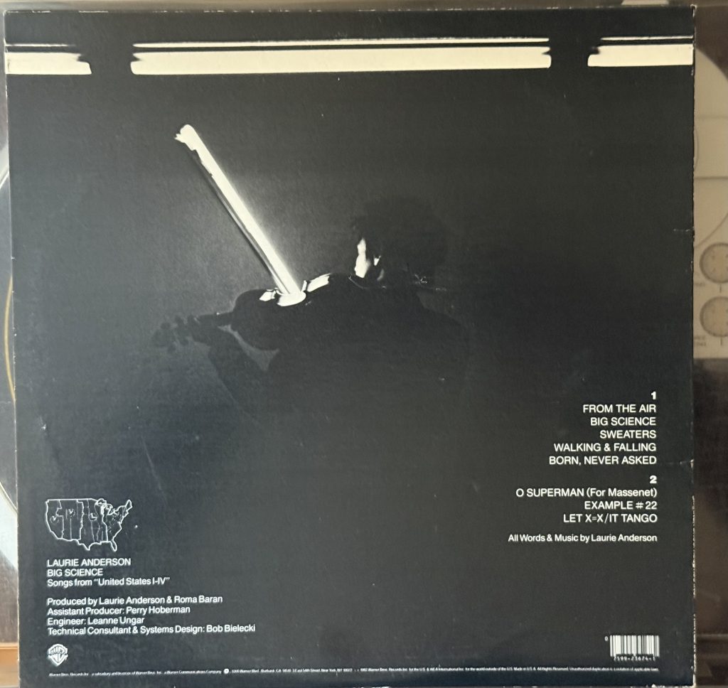 The story of Big Science starts before You’re the Guy I Want to Share My Money With. Laurie had recorded the song and released it as a single in the UK in 1980 on the small label One Ten Records, in a limited edition of 1000 copies. That’s when BBC DJ John Peel changed the trajectory of her career. Putting it in frequent rotation on his show on BBC Radio One, his championing of the song led a British distributor to request 80,000 copies of the single. Laurie signed a distribution deal with Warner Bros. Records and the single went all the way to Number Two in the UK. On the strength of the single, Warner Bros. signed Laurie to an eight-album deal.