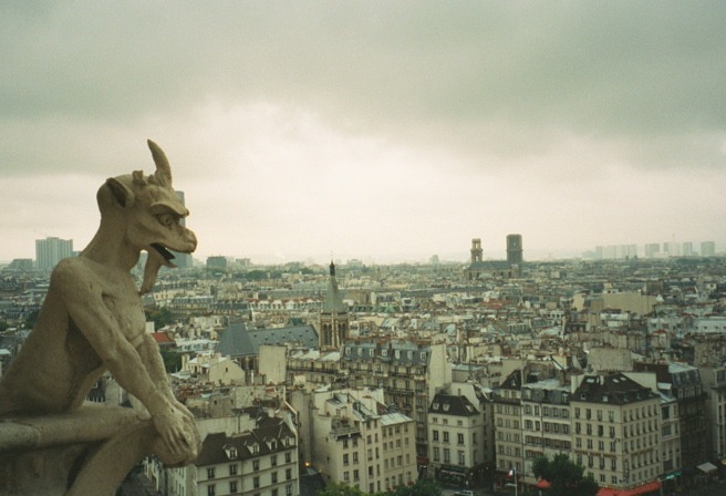 Posted for the LensDay challenge of October 26, “Spooky.” Taken in 1999 atop Notre Dame in Paris. Equipment: long-discarded Minolta APS camera, digitized in 1999 by Kodak. Cropped to restore APS framing which was eliminated by the digitization.