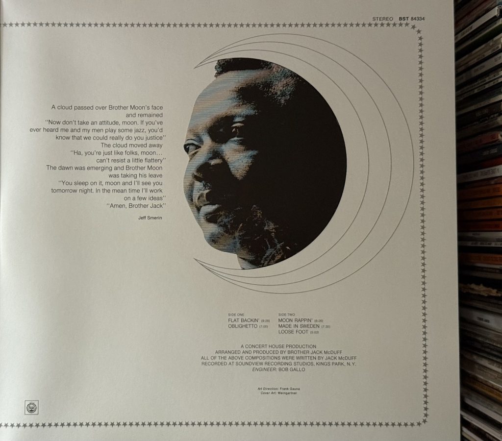 “Made in Sweden” threatens to invade “Take Five” territory, but it’s in six rather than five, and the melody goes in a slightly different direction, staying more closely wedded to the groove. Ron Park’s flute is a great addition to the theme, but the real star is McDuff’s Hammond, which threatens to levitate into outer space throughout his solo. A drum break separates the second half of the tune, in which a two-note riff moves from the organ to the horns and back “Loose Foot” picks up where “Made in Sweden” left off, but it’s a more straightahead tune and a showcase for Ron Park’s tenor sax. McDuff gives us a blues-forward solo in which he displays his virtuosic touch on the organ. The band closes out the outer-space album in a most grounded way, with the blues.