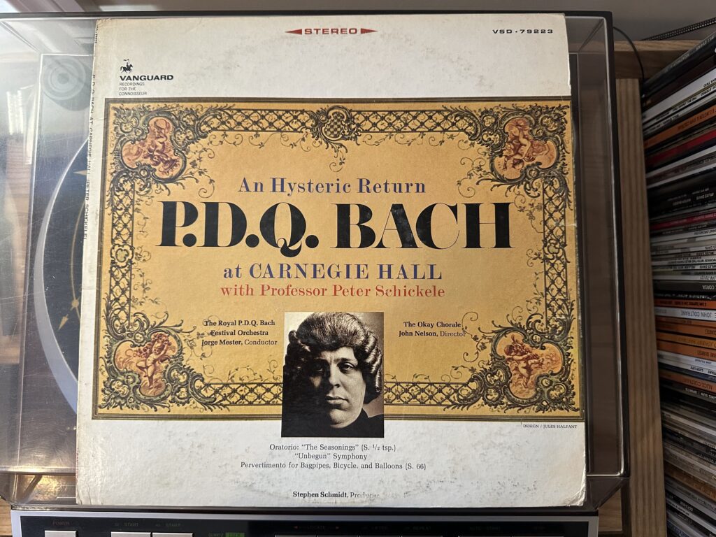 For a choral singer, Portrait of P.D.Q. Bach gives the listener something to aspire to, if only that something is making it stop. But in all seriousness, I think I could still sing most of the parts of the album by heart, and to my ear it’s one of the most consistently funny recordings in his oeuvre. Next week we’ll get a listen to the end of Schickele’s (and P.D.Q.’s) run on Vanguard Records, with another work of great plagiarism composition from the last and oddest of Johann Sebastian Bach’s twenty-odd children.