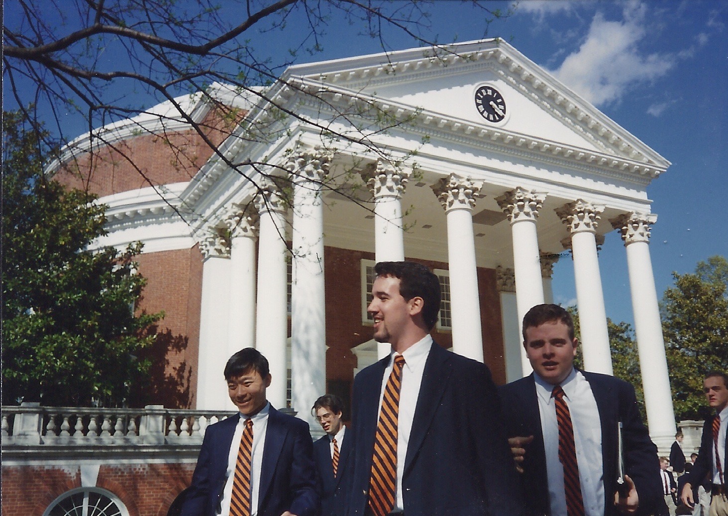 Brogan Sullivan had graduated from Club and the VGs in 1992 and had married soon after, so this shouldn’t have come as a shock to us. But somehow it did. Don and I looked at each other, left, and walked back to the Lawn, where we pulled out our rocking chairs onto the Jeffersonian sidewalk in front of our 160+ year old student rooms. I don’t remember whether we tapped into the solitary bottle of Jack Daniels that I kept in my room for the entirety of the year for entertaining (I didn’t entertain, or drink, much, then). But we talked, for hours, about the coming of adulthood, about family, and friendship. By the end of the day we had become brothers, and I knew that we would do anything for each other.