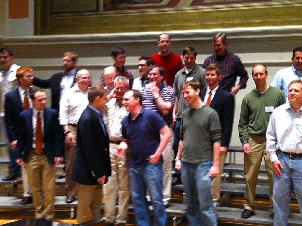 In January 1943, Thompson had taken over the directorship of the Virginia Glee Club as Harry Rogers Pratt stepped down to focus on the war effort. The Glee Club provided, presumably, a solution to a significant challenge: how to mount the forces for a concert with a student body that was perpetually being shipped off to war. The Glee Club, while reduced greatly by the war effort (the 1942-1943 group officially numbered 45, down from 130 in 1940-1941), at least still performed. And Thompson knew them, having conducted them in his “Tarantella” the preceding spring. Accordingly Thompson composed the new work for men’s chorus and piano.