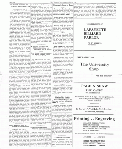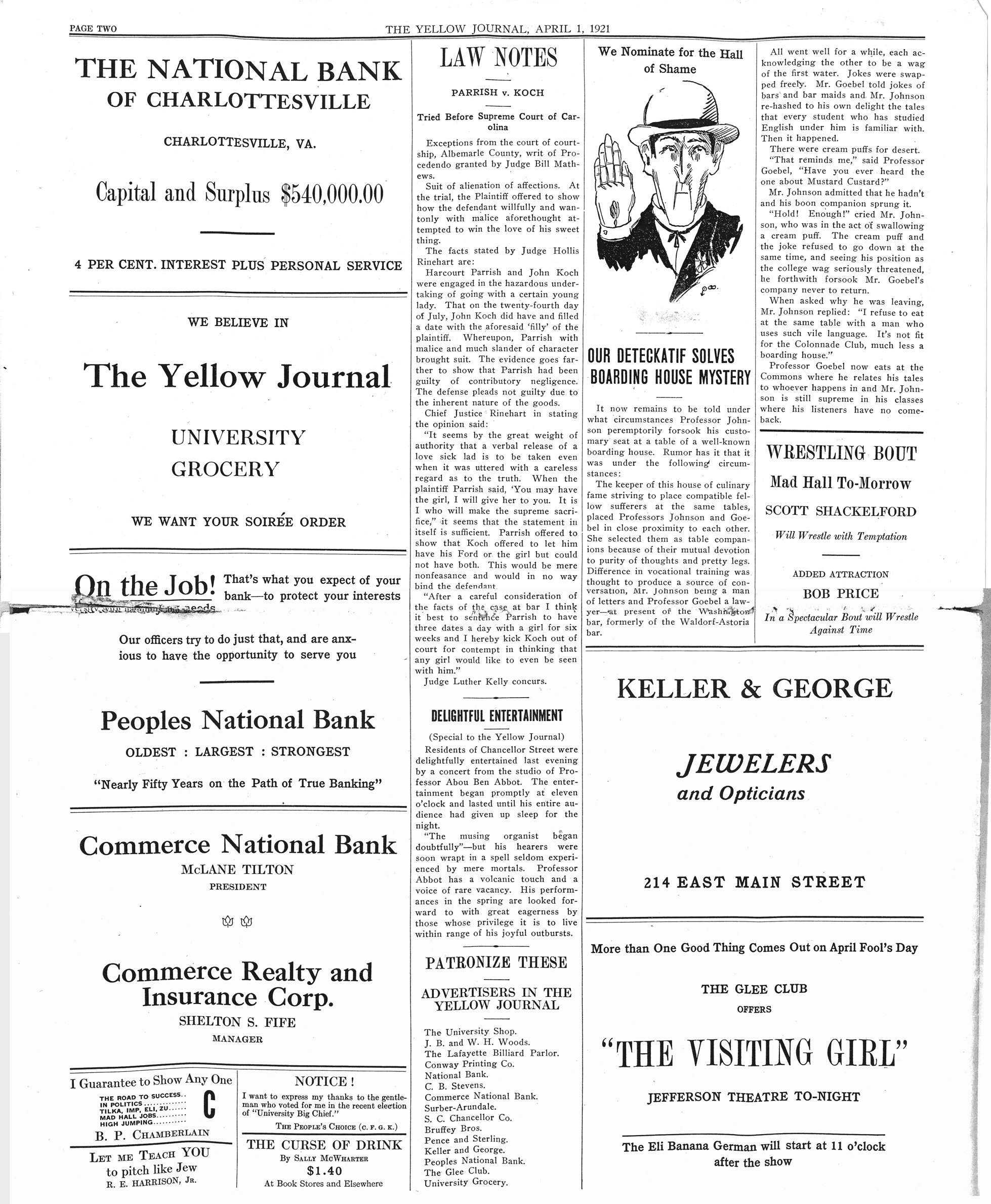 - Plus joke ads for a Wrestling Bout in Madison Hall (“Scott Shackelford Will Wrestle With Temptation”) and others